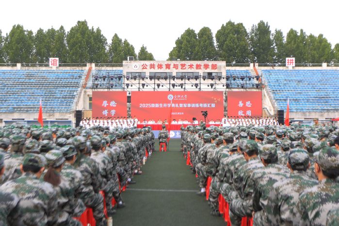 9月28日,2025级新生开学典礼暨军事训练考核汇报于二期体育场举行。全体校领导、承训部队领导出席活动,各二级学院与职能部门党政主要负责人、2025级新生及辅导员、全体参训教官共同参加活动。大会由党委书记邬平川主持。