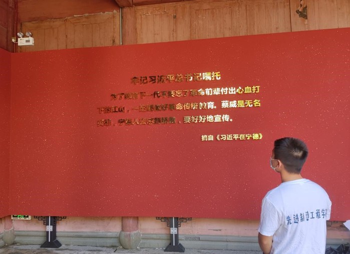 《习近平在宁德》中有这么一段话:“为了教育下一代不要忘了革命前辈付出心血打下的江山,一定要做好革命传统教育。蔡威是无名英雄,宁德人要感到骄傲,要好好地宣传。”