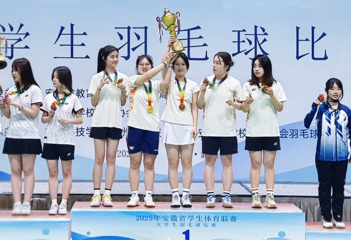 4月28日,2025年安徽省学生体育联赛大学生羽毛球比赛在安徽科技学院滁州校区体育馆落幕,我校羽毛球队充分发扬团结协作、勇于拼搏的精神,荣获女子团体金牌、混合双打银牌、男子团体铜牌的“一金一银一铜”优异成绩,其中女子团体取得参赛以来最佳成绩。