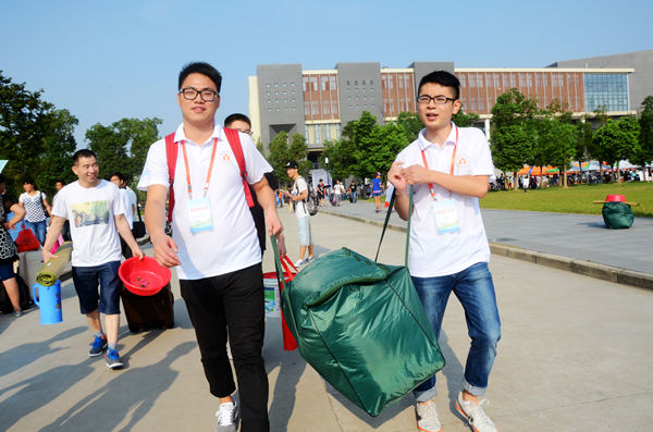 化学与材料工程系的2015级新生行少冬,为了把握机会锻炼自己,只身一人,拖着行李箱、背着背包,坐上开往合肥的火车。历经15个小时,在9号清晨顺利到达合肥火车站。他告诉记者,一来到学校,就被美丽的风景所吸引,热心的志愿者亲自帮他排队领代购物品,并耐心介绍学校情况,一直帮他送到宿舍,完成报到,让他倍感亲切。
