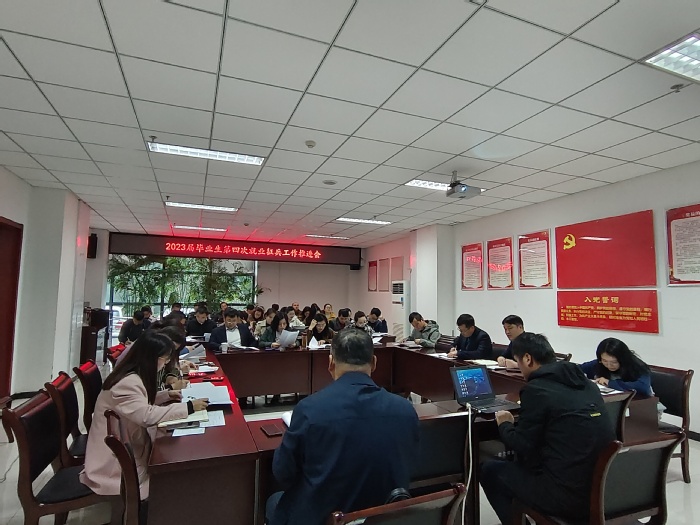 4月23日上午,我校在行政楼一楼会议室召开2023届毕业生第四次就业征兵工作推进会。各二级学院党委副书记、学工办负责人、就业联络员、毕业班辅导员、班主任参加会议。会议由党委学生工作部副部长张应杰主持。