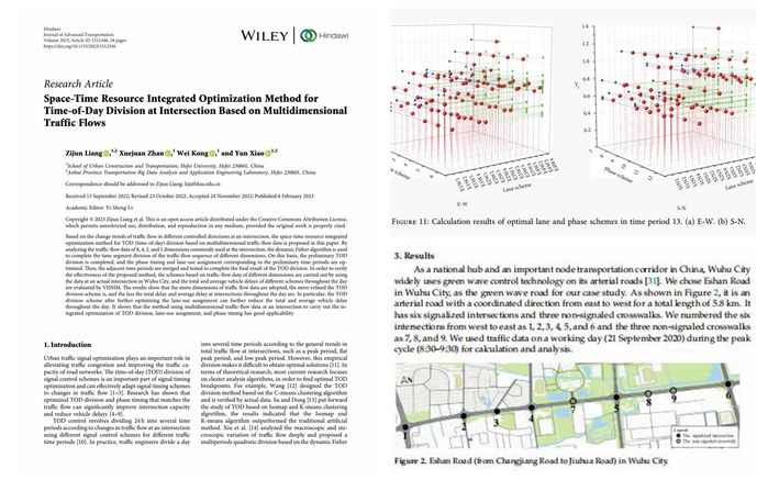 “光有热爱还远远不够,还需要知识和经验的不断积累。”詹学娟在科研道路上敢于挑战自我,收获颇丰。她以第二作者(导师第一作者)发表学术论文7篇(SCI检索3篇,EI检索3篇,学报1篇),其中以交通信号控制为研究方向的论文《基于多维交通流的交叉口时段划分与时空资源一体化优化方法》发表在运输研究领域国际期刊《先进运输杂志》(Journal of Advanced Transportation,IF=1.983)上,以交叉口不同控制流向的交通流量变化规律为依据,提出了一种基于多维度交通流量数据的用于交叉口TOD(time-of-day)划分的时空资源一体化优化方法。验证表明,采用交通流量的维度越多,交叉口全天车辆总延误和平均延误越低,特别是进一步优化车道功能后成效更佳。