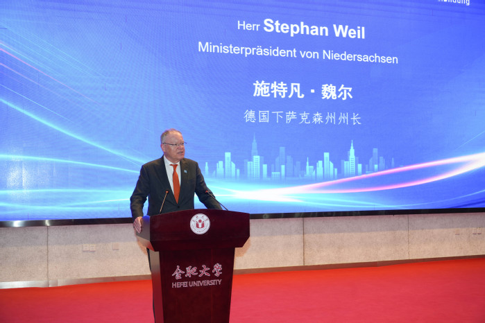 5月29日下午,第十七届中德应用型高等教育研讨会在我校开幕。安徽省委副书记、省长王清宪,德国下萨克森州州长施特凡·魏尔分别致辞。安徽省副省长任清华主持开幕式。德国下萨克森州议会议长汉娜·纳贝尔,德国驻沪总领事贺德满,安徽省副省长孙勇,省政府秘书长潘朝晖,中国人民外交学会欧洲部主任卢金涛,省政府副秘书长汪春明、张红君,省委教育工委书记、教育厅厅长钱桂仑,省外办主任秦俊峰,省教育厅一级巡视员解平,合肥市政府副市长李命山出席开幕式。